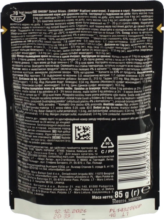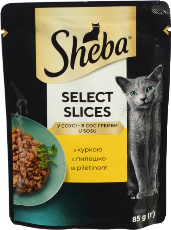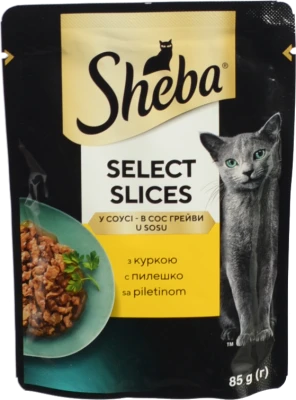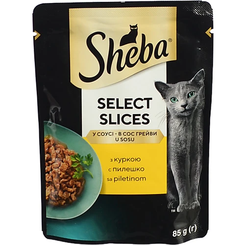 - Корм консервований для дорослих котів Sheba Select Slices з куркою в соусі 85г