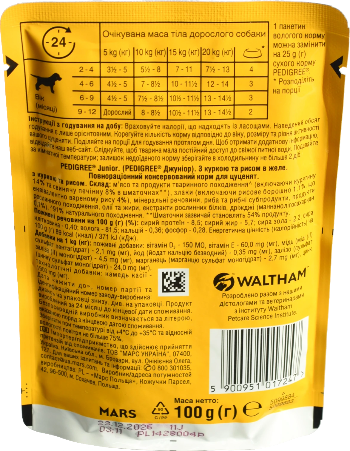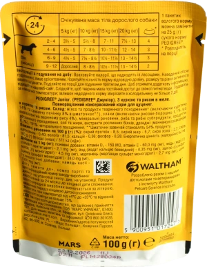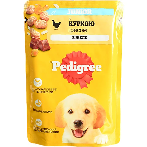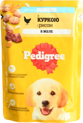 - Корм консервований повнораціонний для цуценят З куркою в желе Junior Pedigree д/п 100г
