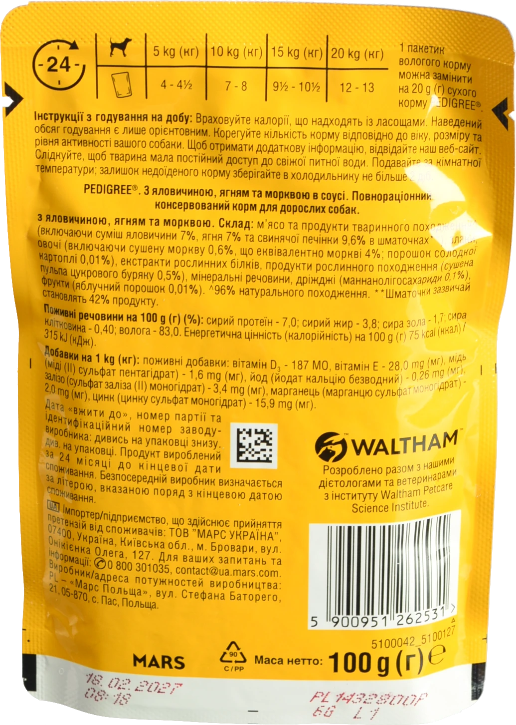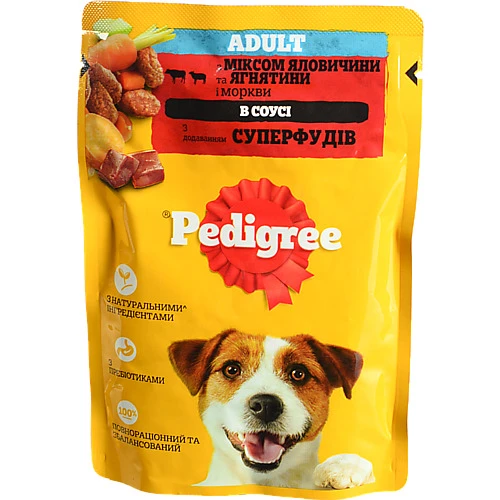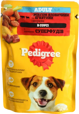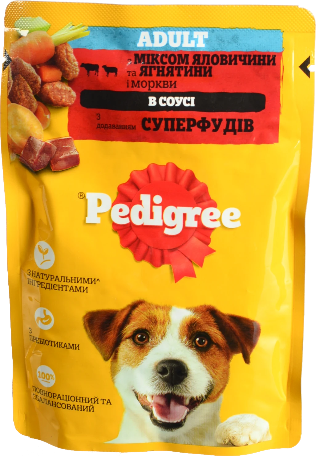 - Корм консервований Pedigree 100г Яловичина та Ягнятина