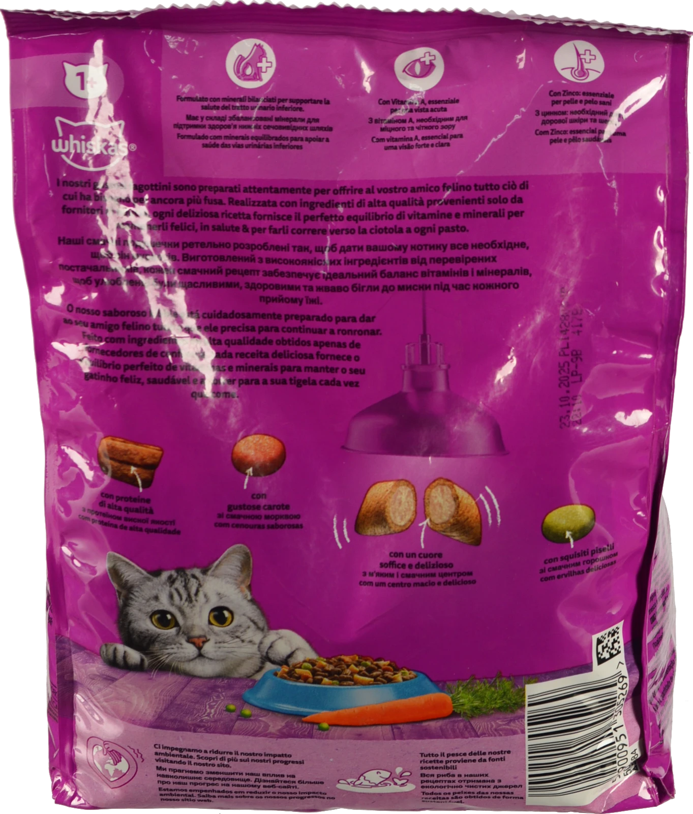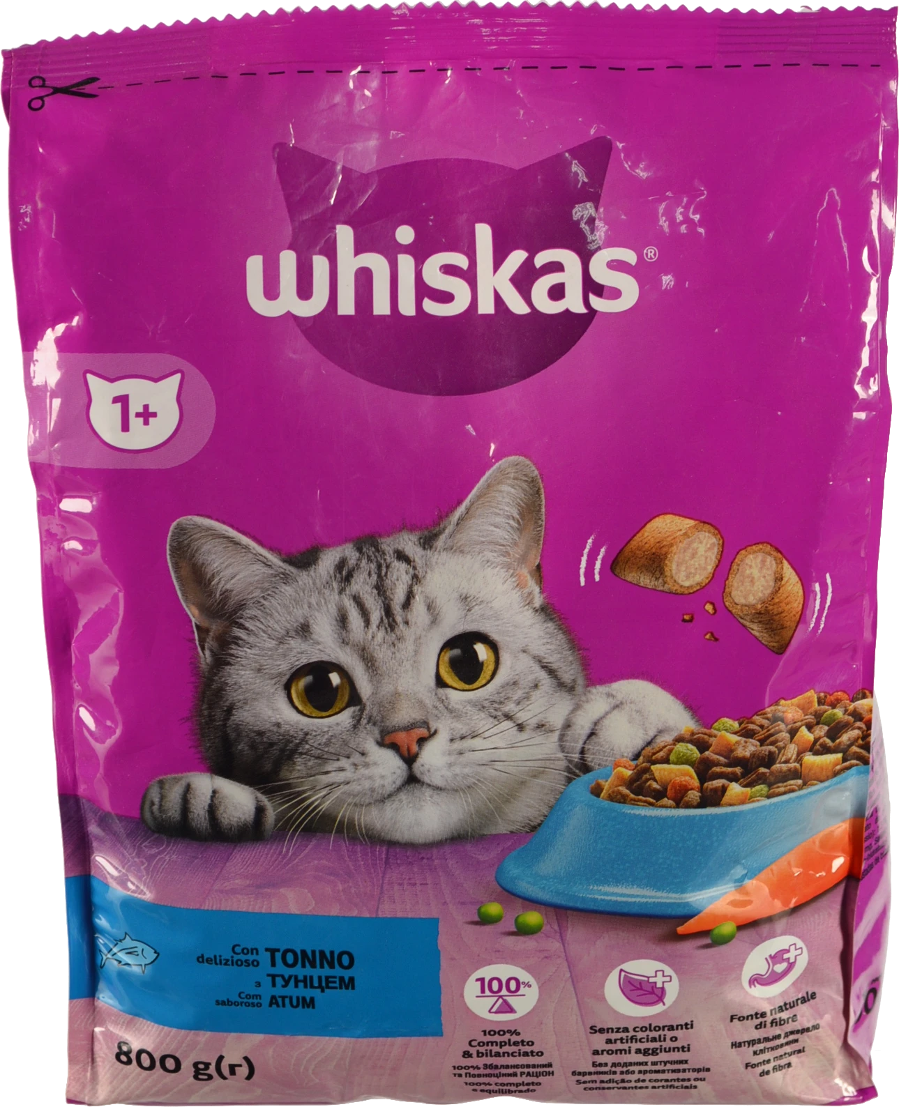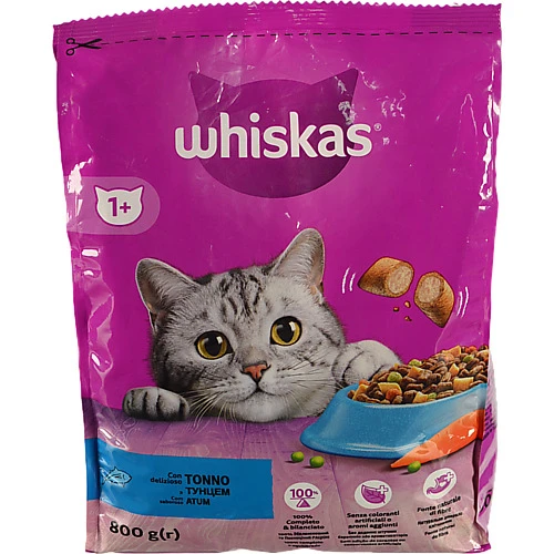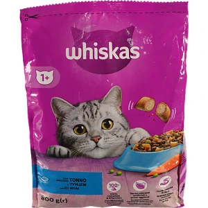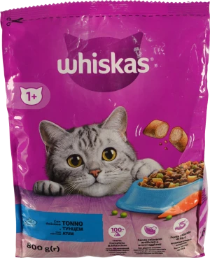 - Корм сухий повнораціонний для дорослих котів З тунцем Whiskas 800г