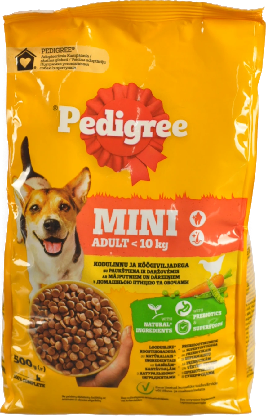 - Корм сухий Pedigree Mini З домашньою птицею та овочами 500г