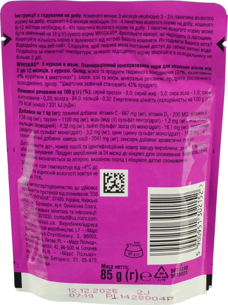 - Корм Віскас 85г д.кошеня курка в желе