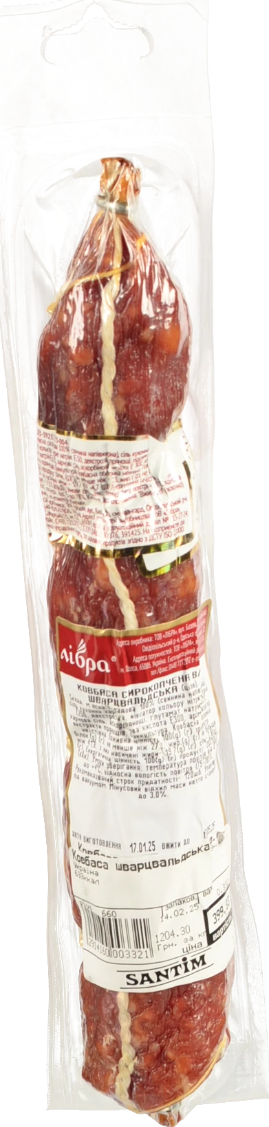 - Ковбаса Либра Шварцвальдська сирокопчена , вищий ґатунок, вакуумна упаковка