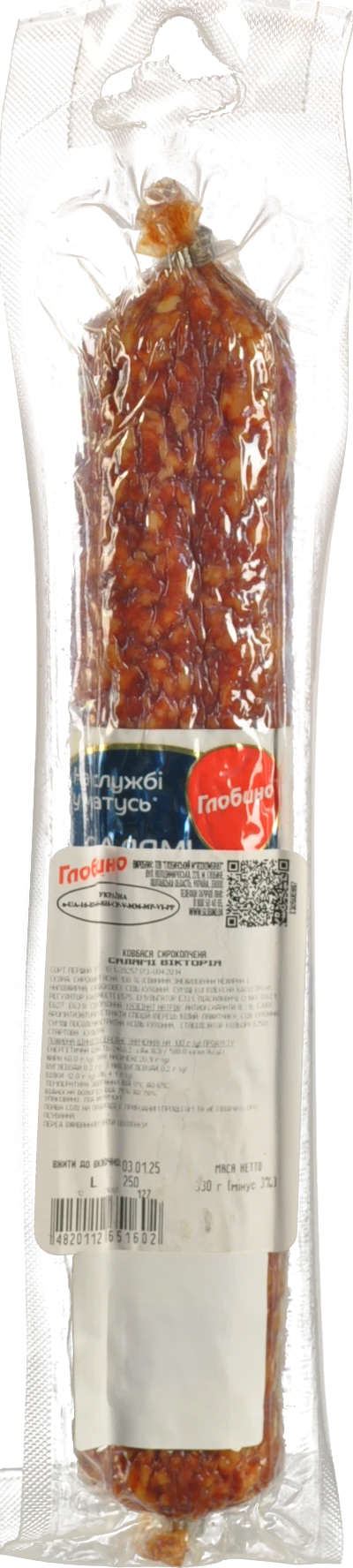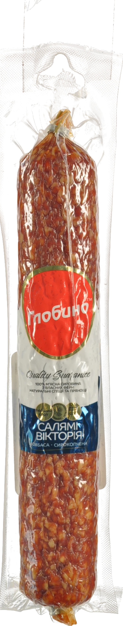 - Ковбаса «Глобино» «Салямі Вікторія» сирокопчена, перший ґатунок, 330 г