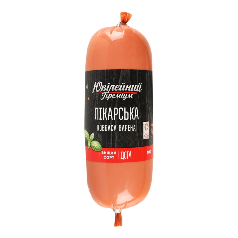 - Ковбаса «Ювілейний» Преміум Лікарська, варена, вищий ґатунок, 400 г