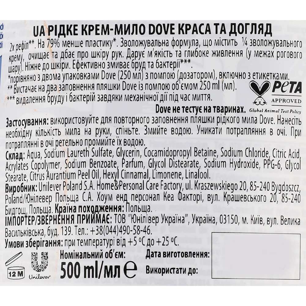 - Крем-міло Dovе 500мл краса та догляд