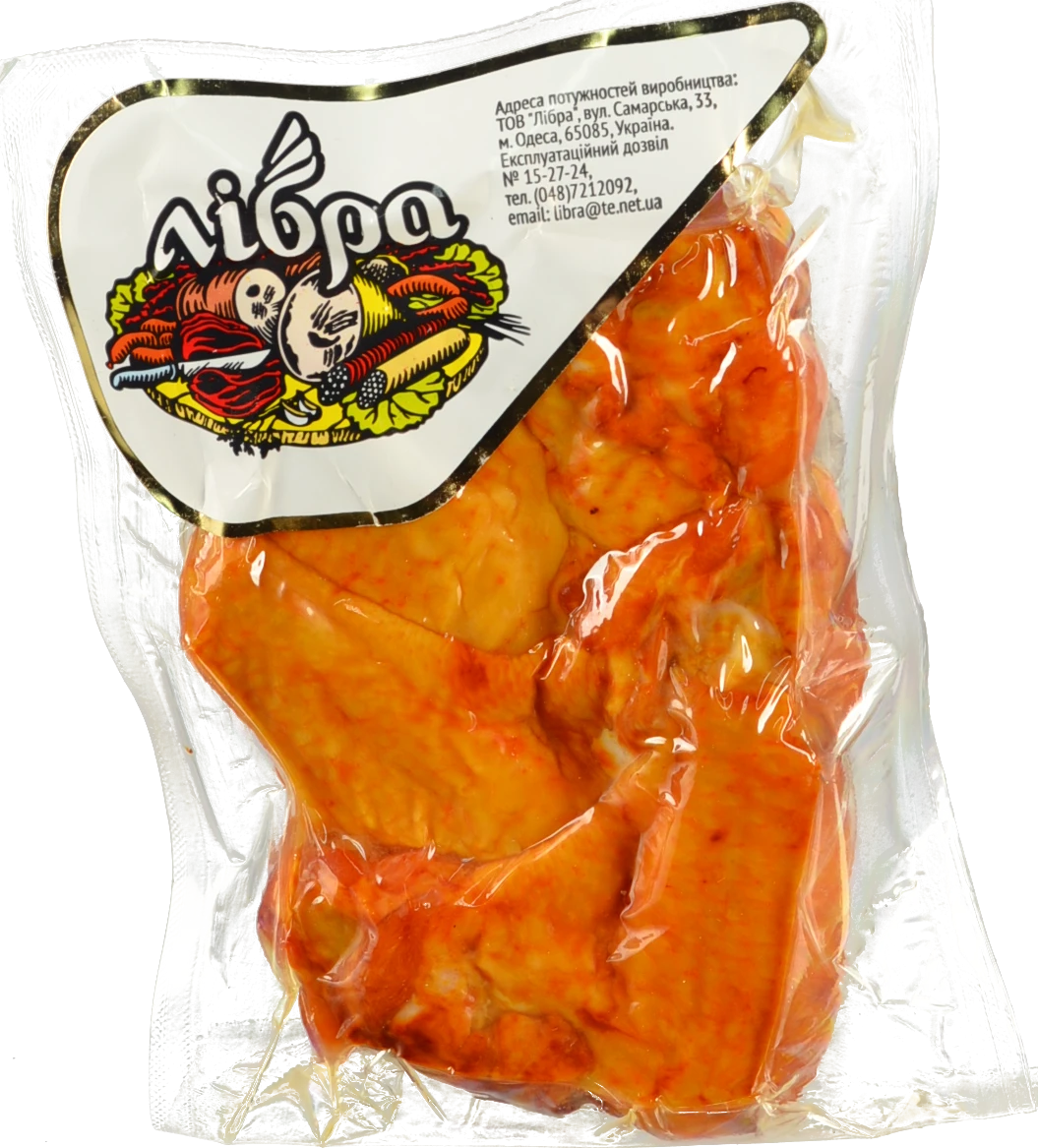 - Крильця апетитні курячі копчено-варені Лібра, вищий гатунок, у вакуумній упаковці