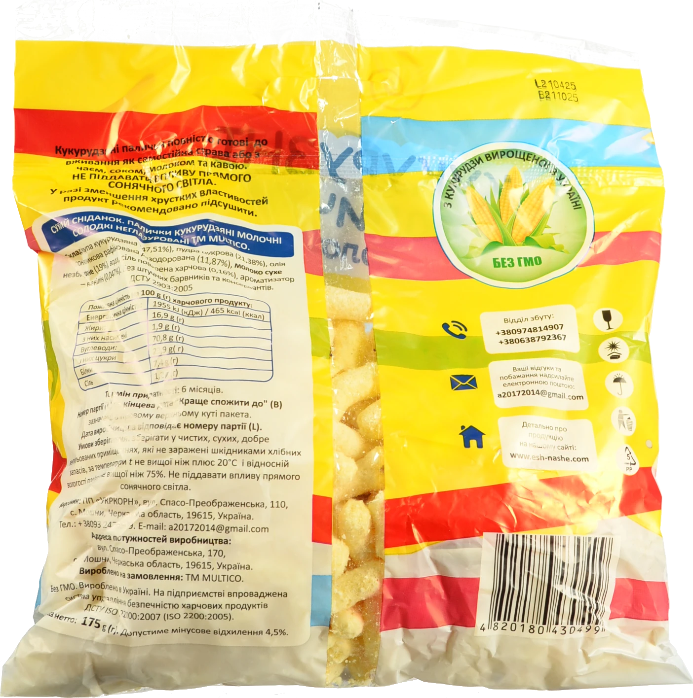 - Кукурудзяні палички Multico Odessa 175г молочні