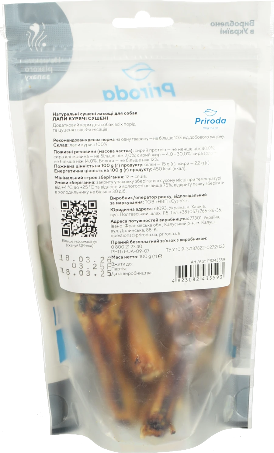- Ласощі д.собак Природа 50г лапки курячі натуральні сушені