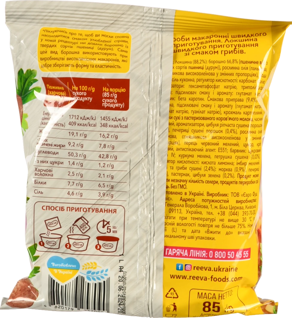 - Локшина швидкого приготування зі смаком грибів Reeva 85г