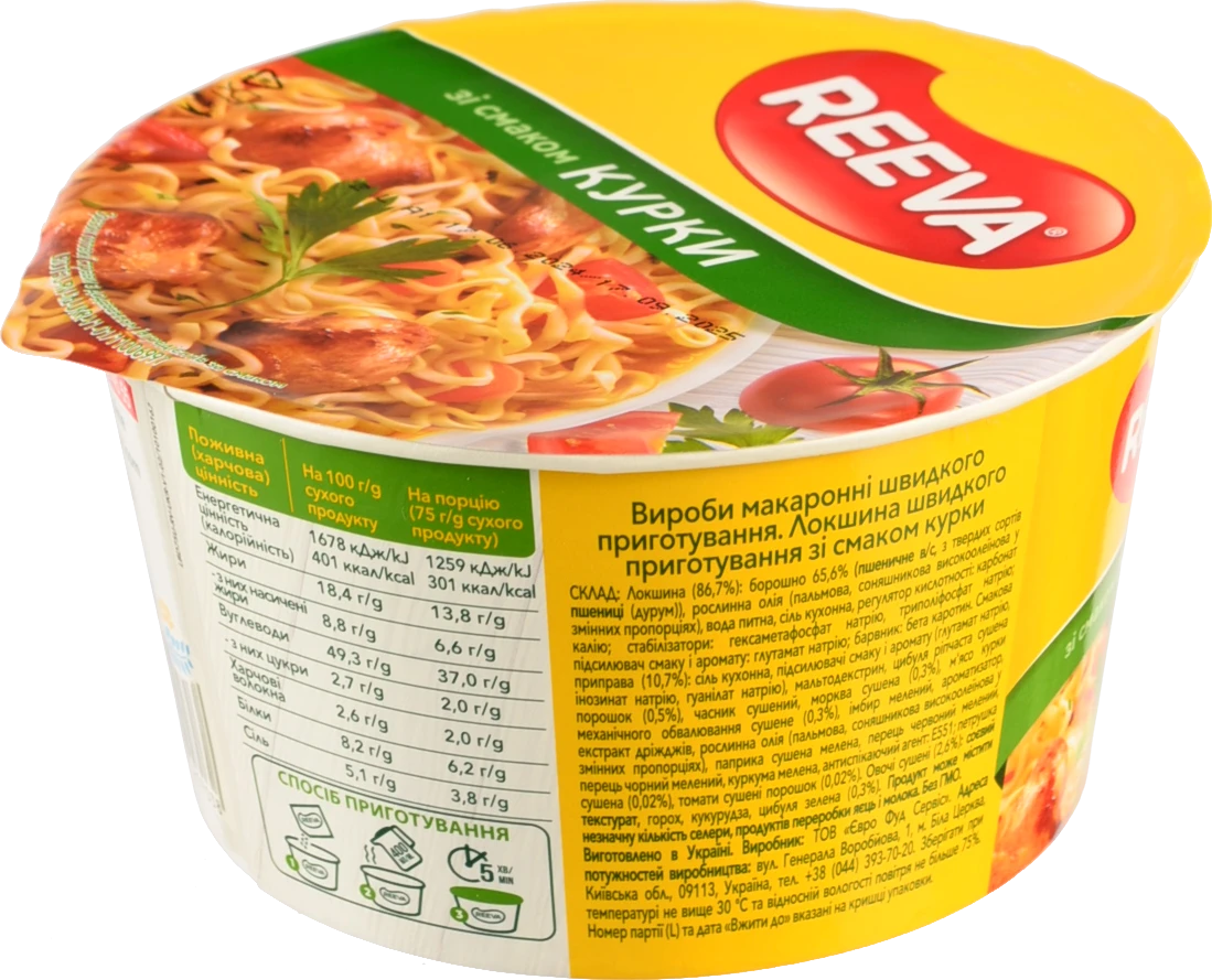 - Локшина швидкого приготування зі смаком курки Reeva 75г
