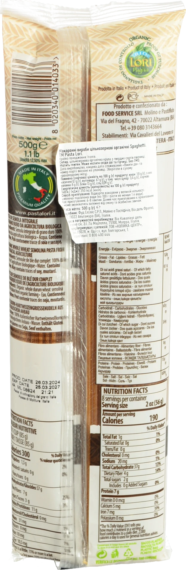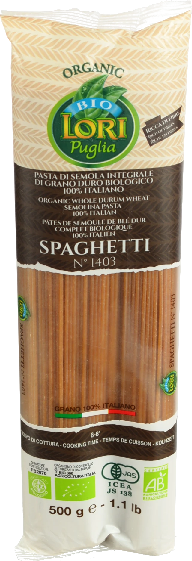 - Макарони Bio Lori 500гр спагетті цільнозернові