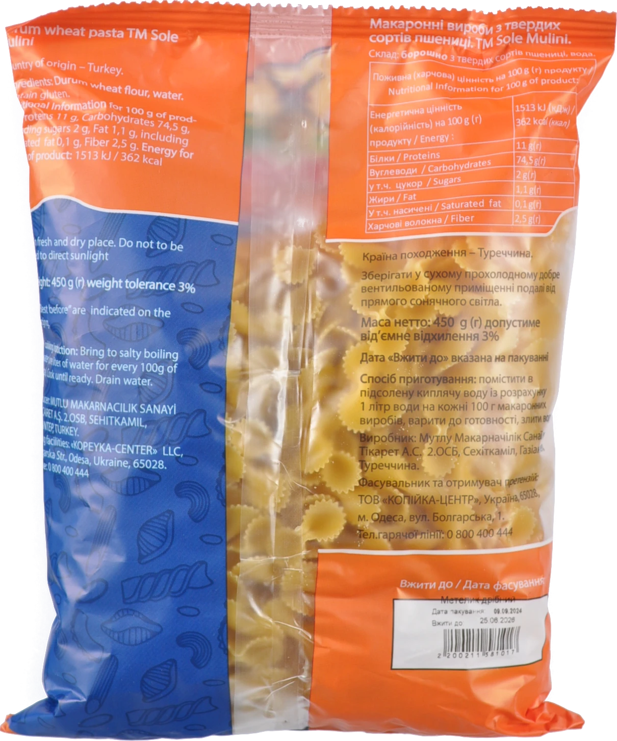 - Макарони Sole Mulini 450г метелик дрібний твердих сортів