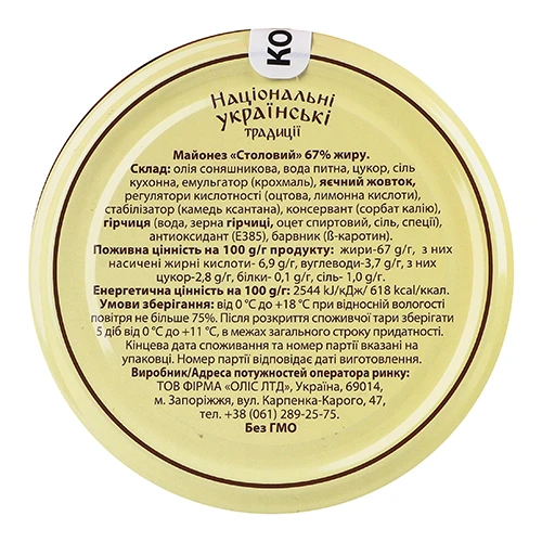 Вид продукції:МАЙОНЕЗ
