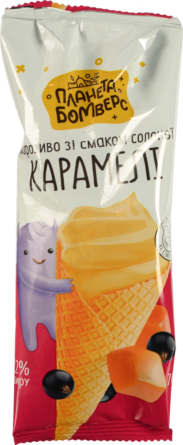- Морозиво Планета Бомверс 70г ріжок карамель