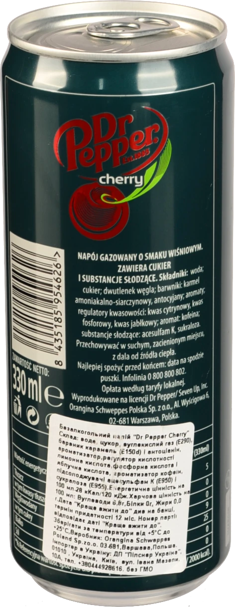 - Напій безалкогольний газований Cherry Dr Pepper з/б 330мл
