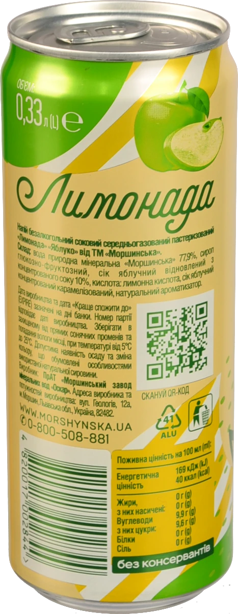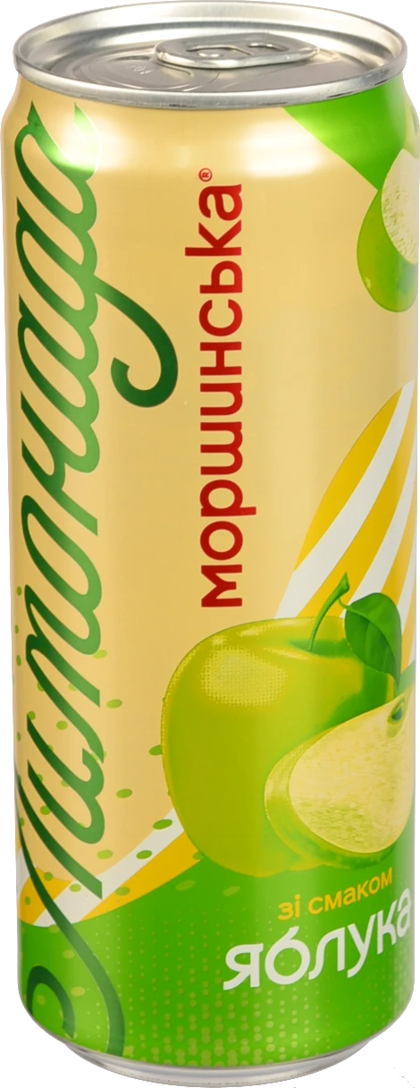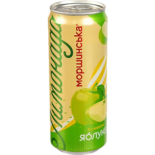 - Напій безалкогольний соковмісний середньогазований зі смаком яблука Лимонада Моршинська з/б 0.33л