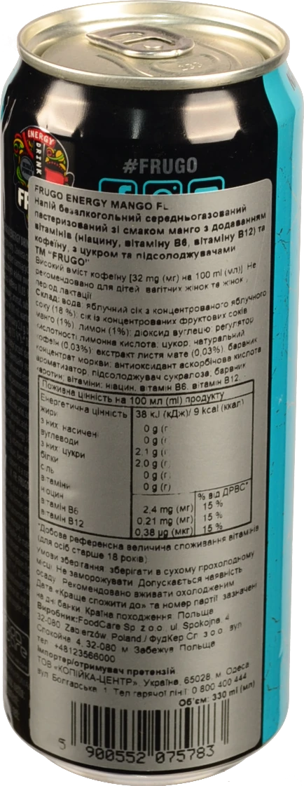 - Напій енергетичний Frugo 330мл blue манго б.цукру
