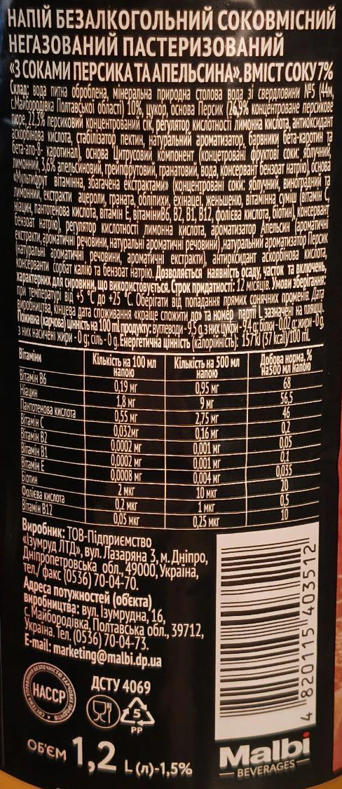 Вид продукції:НАПІЙ СОКОВМІСНИЙ БЕЗАЛКОГОЛЬНИЙ