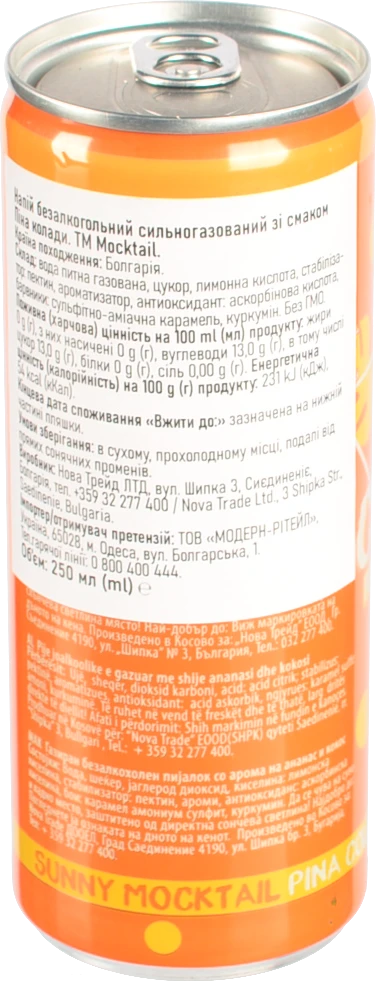 Вид продукції:КОКТЕЙЛЬ БЕЗАЛКОГОЛЬНИЙ