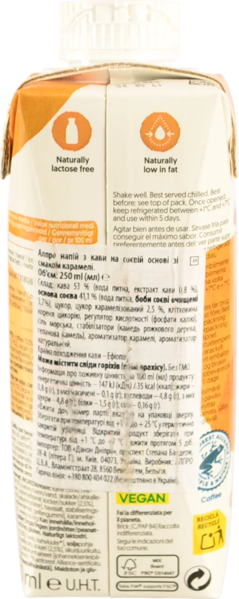 - Холодний кави Alpro на соєвій основі з карамельним смаком 250мл