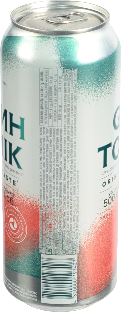 - Напій слабоалкогольний 0.5л 8% сильногазований Джин Тонік Оболонь з/б