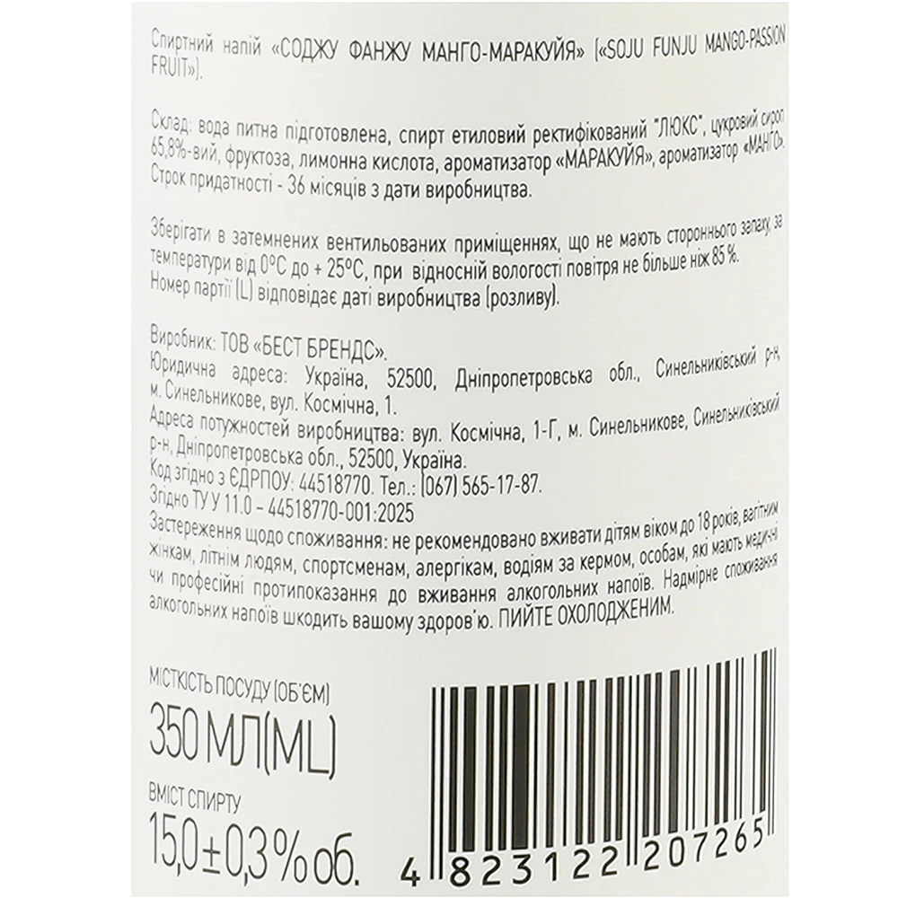 - Напій спиртний Соджу Фанжу 0.35л манго маракуйя