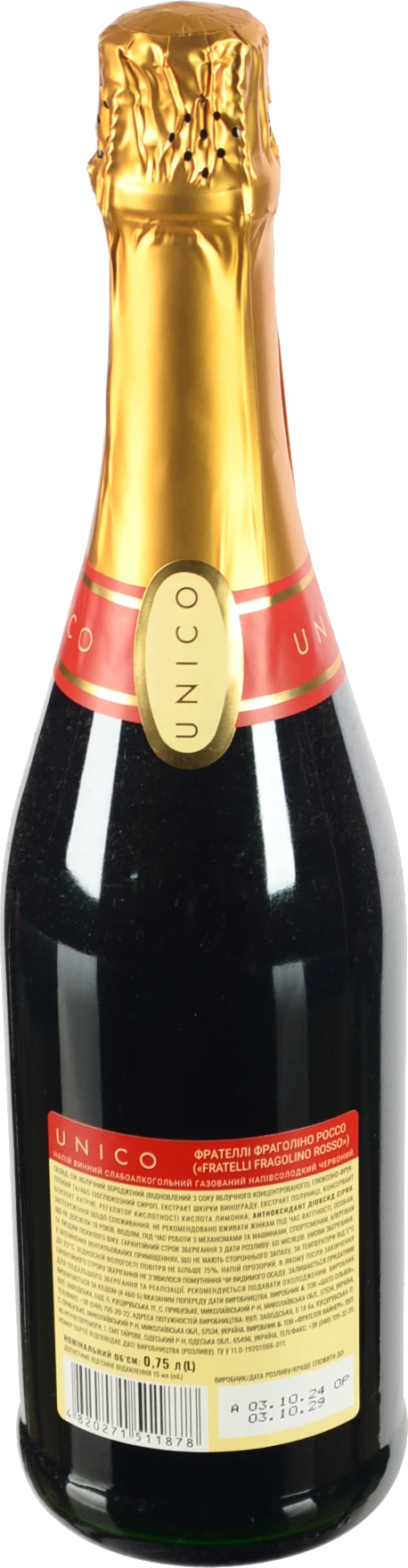 - Напiй винний Unico 0.75л фрателлі фраголіно россо червоний н.сол газ