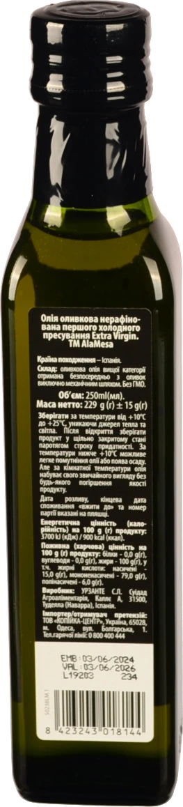 Оливкова олiя Ala Mesa 0.25л екстра вiрджiн скло
