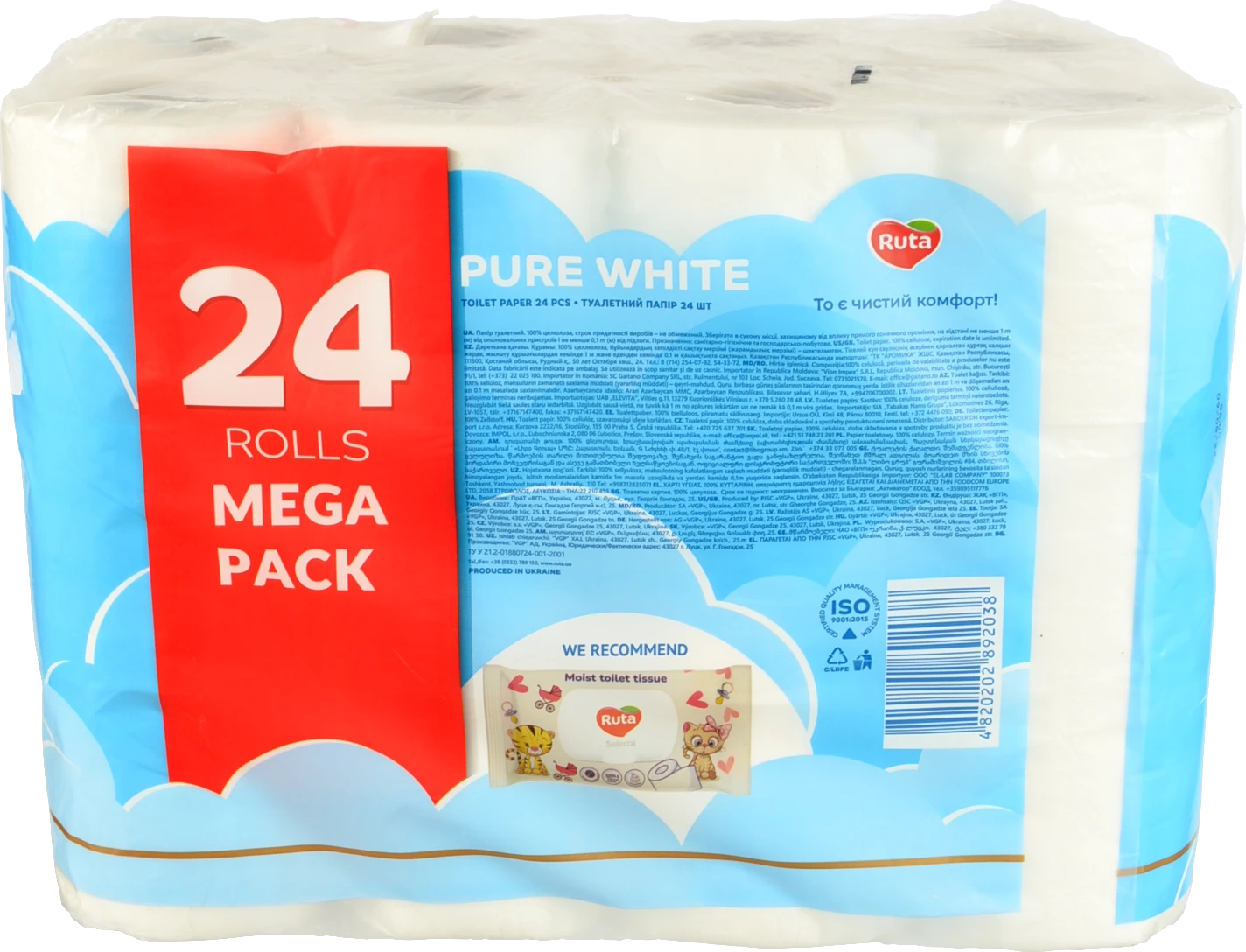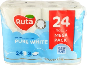 - Папір туалетний 3-х шаровий Pure White Ruta 24шт