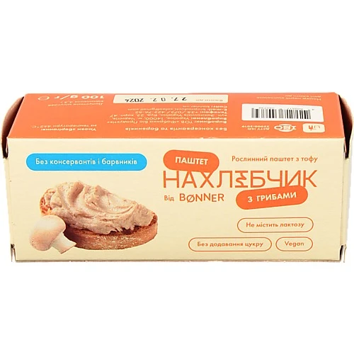 - Паштет Bonner 100г нахлібчик з грибами пастеризований