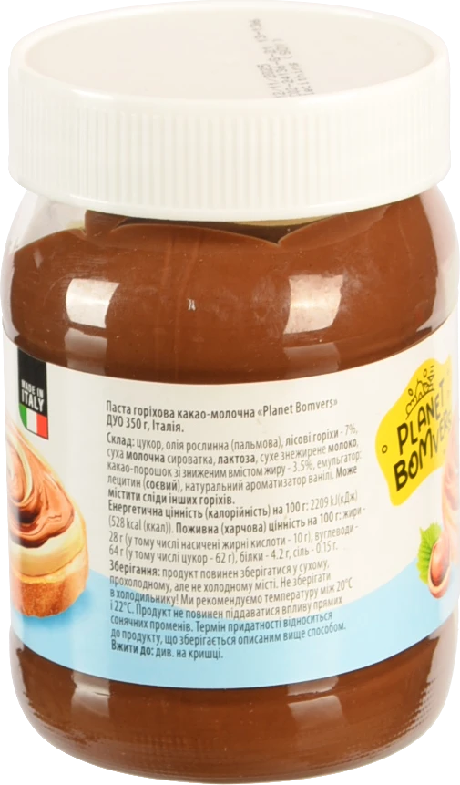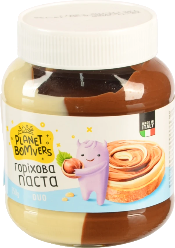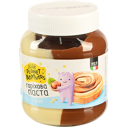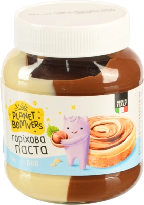 - Паста горіхова Планета Бомверс 350г какао молочна duo