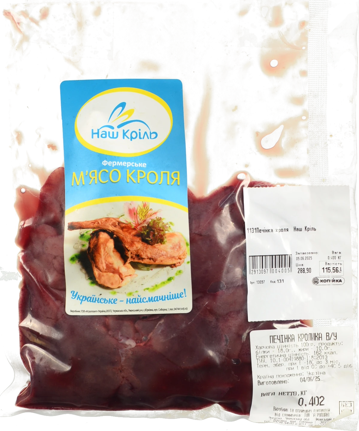 Вид продукції:ПЕЧІНКА КРОЛЯ