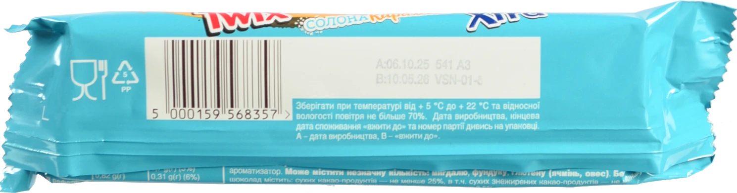 - Батончик Twix шоколадний з печивом і солоною карамеллю, 75 г (2 × 37,5 г)