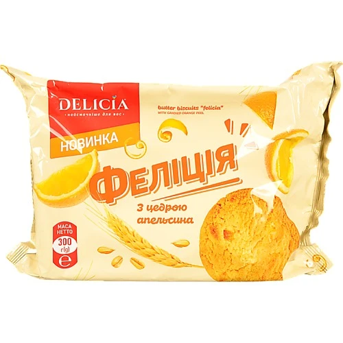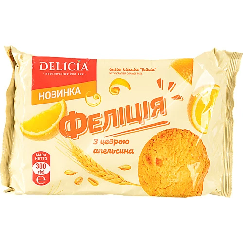 - Печиво здобне з цедрою апельсина Феліція Delicia м/у 300г