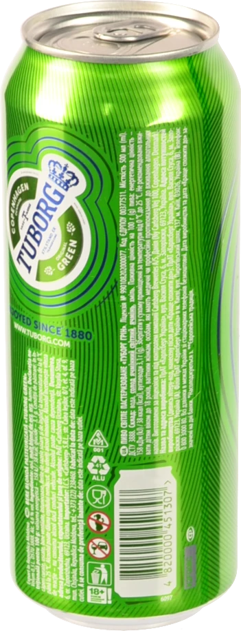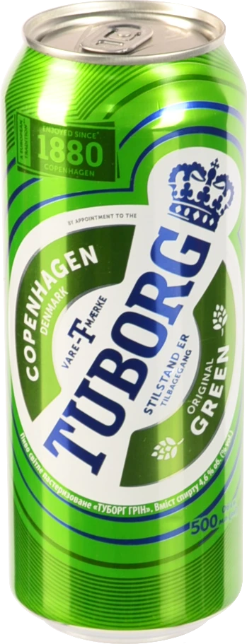 - Пиво 0.5л 4.6% світле пастеризоване Tuborg Green з/б