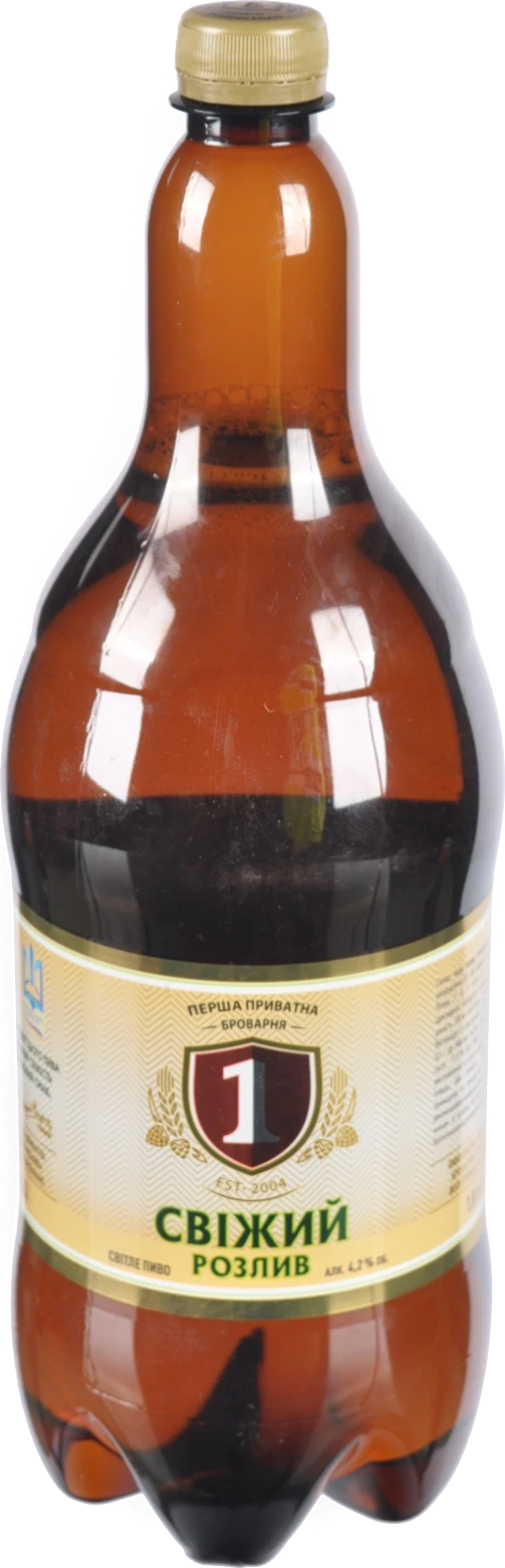 - Пиво 1.8л 4.2% світле фільтроване пастеризоване Свіжий Розлив Перша приватна броварня п/пл