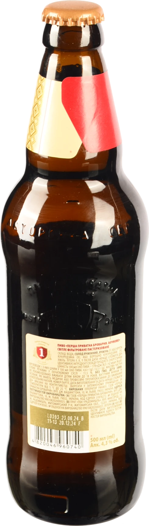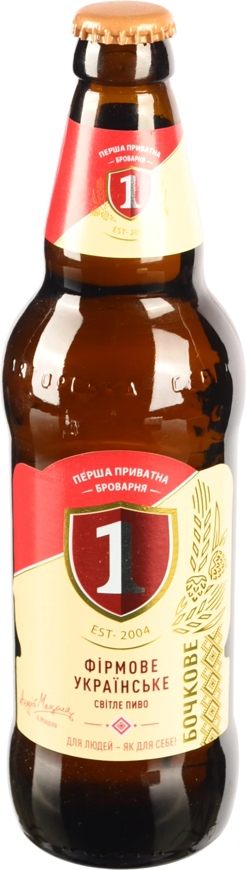 - Пиво 500мл 4.3% світле фільтроване пастеризоване Бочкове Перша приватна броварня