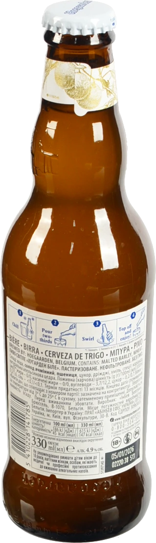 - Пиво світле нефільтроване пастеризоване пшеничне Hoegaarden White, 4,9%, 0,33 л, с.п.