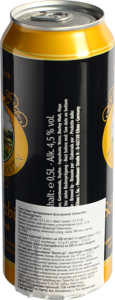 - Пиво Klostergarten 0.5л темне фільтроване Schwarzbier з б