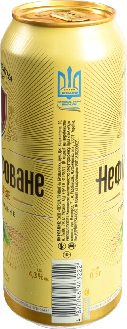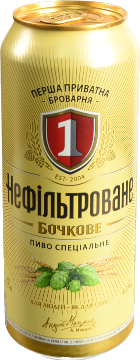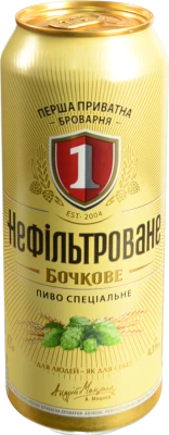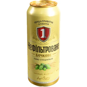 - Пиво спеціальне 500мл 4.3% світле пастеризоване Нефільтроване Бочкове Перша приватна броварня з/б