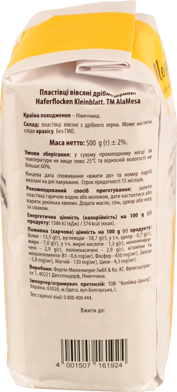 - Пластiвцi вівсяні Ala Mesa 500г дрібнозернові