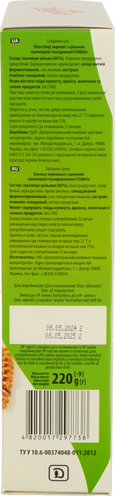 - Пластівці зернові з цільною пшеницею глазуровані FitAktiv Zlakovo к/у 220г
