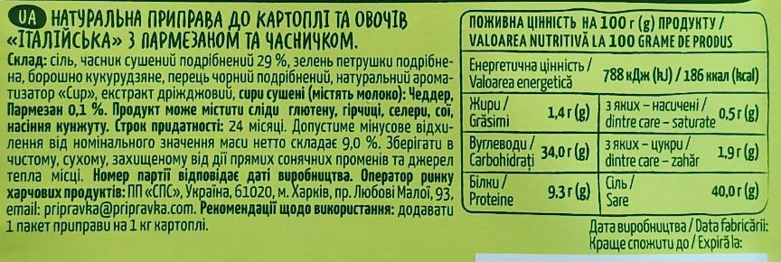- Приправа Pripravka Італійська 25г до картоплі та овочів