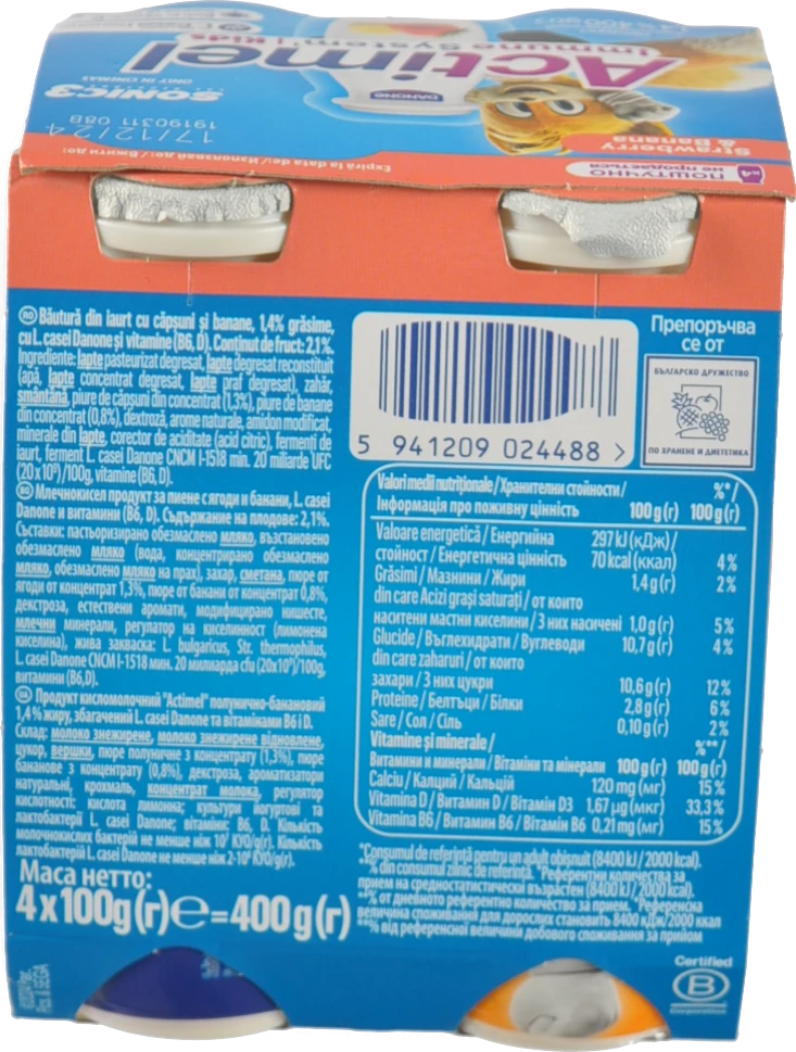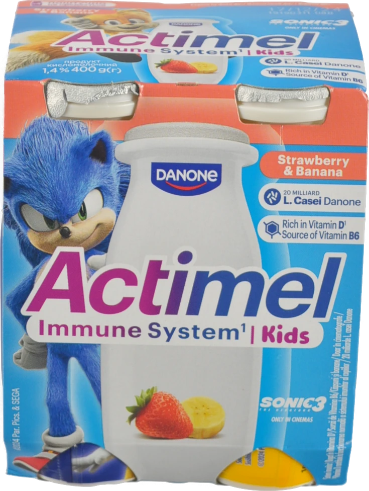 - Продукт к.м Актімель 4x100г 1.4% полуниця банан