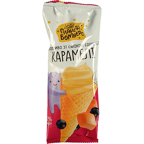 Морозиво Планета Бомверс 70г ріжок карам...