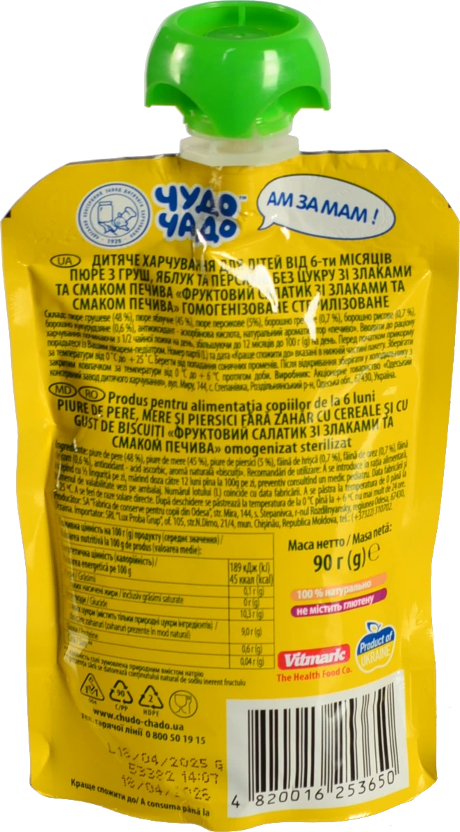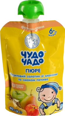 Пюре Чудо Чадо 90г Фруктовий Салат без цукру з печивом та злаками