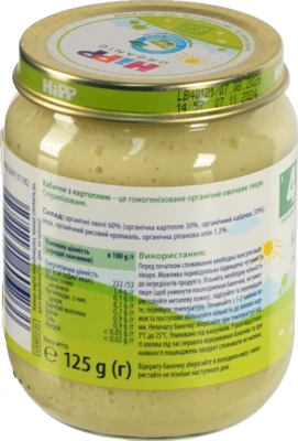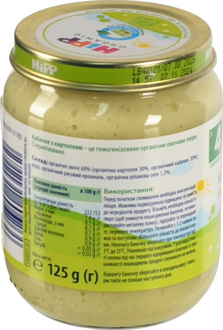 Пюре для дітей від 4 міс. Кабачок з картоплею Organic Hipp 125г