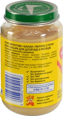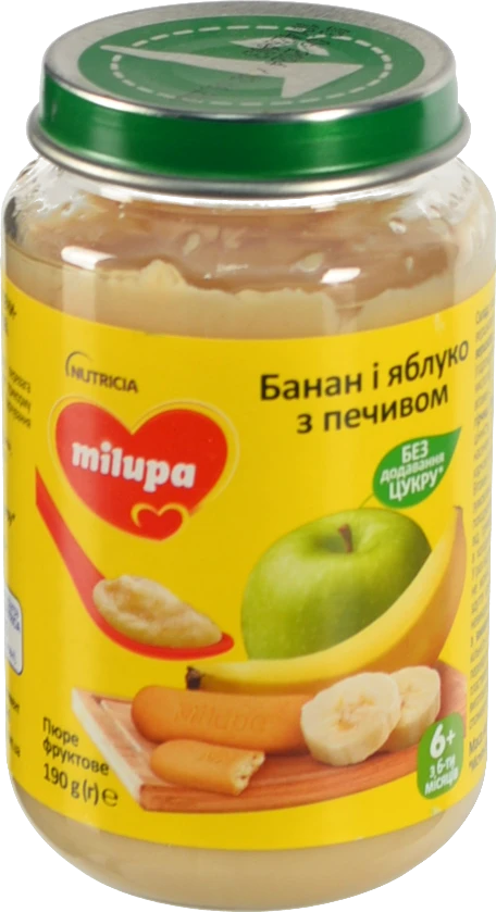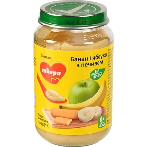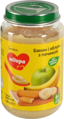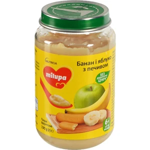 Пюре фруктове для дітей від 6міс Банан і яблуко з печивом Milupa с/б 190г
