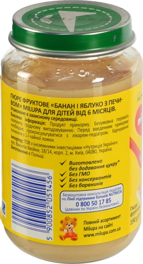 Добавки:Печиво, банан, яблоко